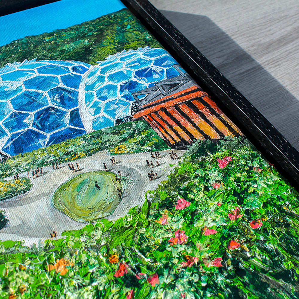 From a clay pit to paradise; The Eden Project near St Austell has so much to offer it’s hard to know where to begin. I began with the Biomes in this painting, capturing the Rainforest and Mediterranean domes side by side, a dominant part of this Cornish attraction. Everywhere you look you can see nature and beauty and I wanted this painting to have the same feel to it, looking over a wealth of foliage and flowers over to the biomes.